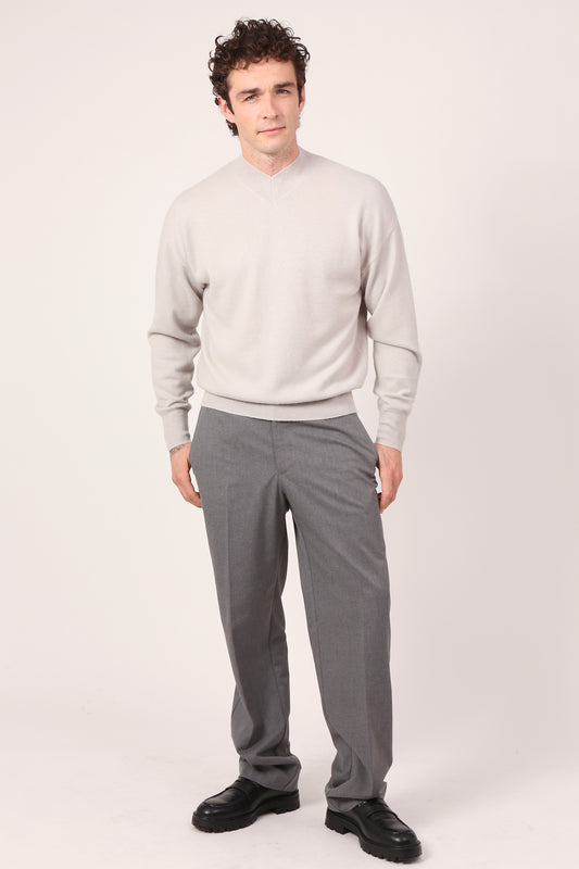 V-NECK JUMPER IN CLAY GREY