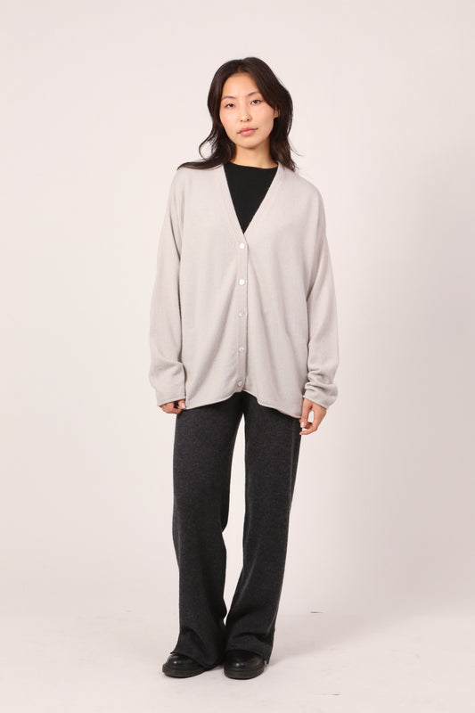 V-NECK CARDI IN CLAY GREY