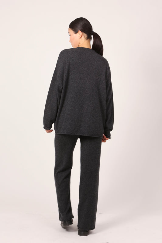 V-NECK CARDI IN DARK GREY