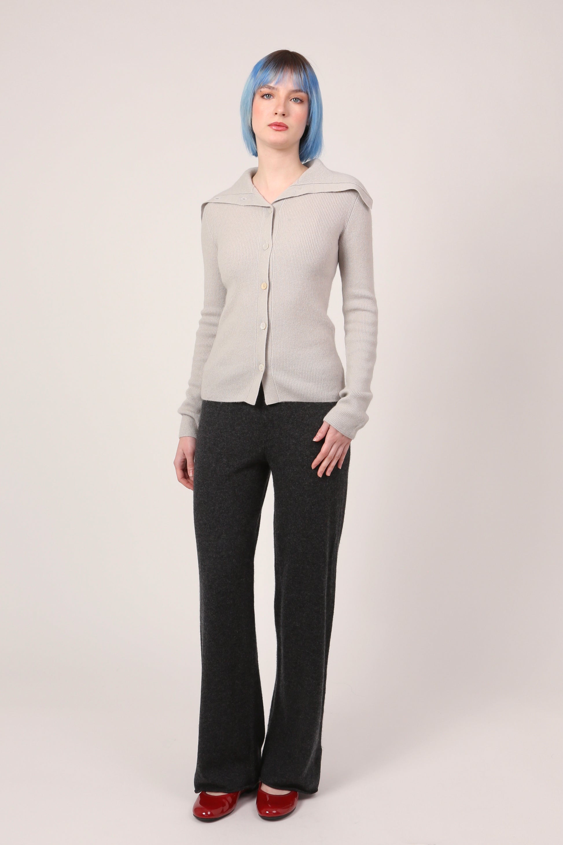 Our sailor cardi is crafted with meticulous attention to detail, this garment features a distinctive collar that adds a touch of charm. Its fitted silhouette complements the form, while the ribbed texture ensures a comfortable feel.
